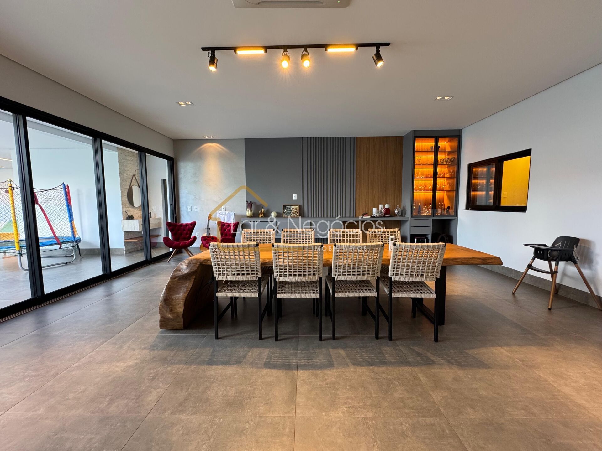 - Área gourmet completa e 100% planejada, com churrasqueira a carvão, fornalha a lenha e um potente ar-condicionado cassete de 50.000 BTUs — ambiente perfeito para receber amigos e familiares com todo conforto;